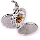 #6: Classic Engravable Silver Tone Skeleton Pocket Watch Hand Wind Mechanical Movement Roman Numerals Full Hunter Design
