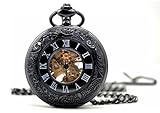 #3: Classic Roman Numerals Black Tone Men Unisex Mechanical Pocket Watch Chain PW048