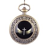 #7: Topearl Angel Wing Cross Design Antique Look Pocket Quartz Watch Chain Black Dial Value Quality