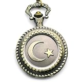 #3: The Stars and Moon Embossment Design Rotundity Pattern Gun Color Case Antique Style Pocket Watch with Chain
