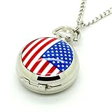 #10: Conbays Silver Color American Flag Quartz Pocket Watch Necklace Pendant Chain Gift