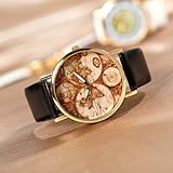 #7: Promithi Women Mens Luxury Hours Clock Point Wrist Watch With Continental Map (black)